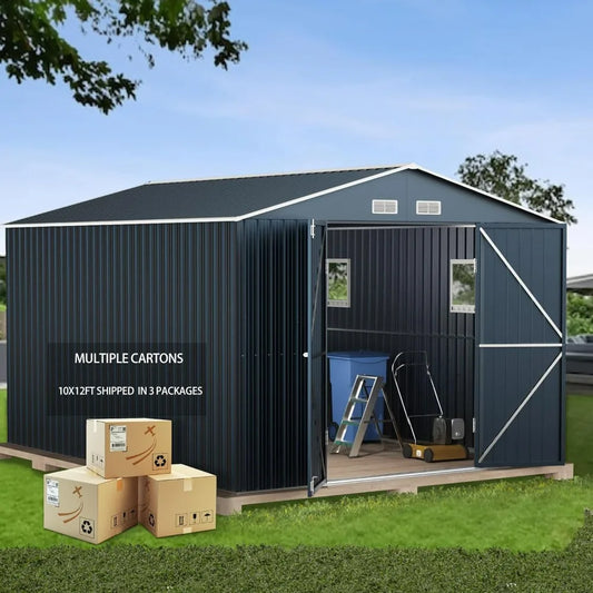 10X12FT Steel Outdoor Storage Shed with Lockable Doors – Perfect for Garden and Patio Tools