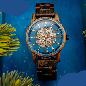 Experience timeless elegance with our Luxury Blue Timber Elite Watch. Crafted with precision, this exquisite timepiece features a stunning ocean blue dial that captures attention with its captivating hue. The meticulously designed wooden case and complementing timber strap exude sophistication, while the precise automatic movement ensures accurate timekeeping. Elevate your style with this distinguished accessory, merging luxury and craftsmanship seamlessly.
