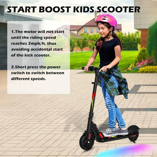 Foldable Electric Scooter for Kids 6-15 Years Old, LED Display, with Adjustable Speed and Height, with Rainbow Light