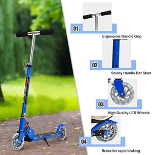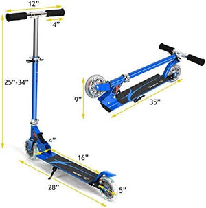 Folding and Height Adjustable: This kick scooter is convenient to fold for storage and portability. The handlebar height adjusts from approximately 30 inches to 34 inches, accommodating kids of different ages.