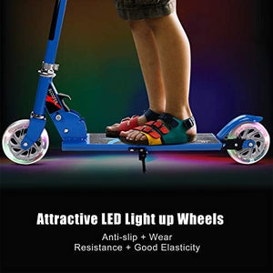 LED Light-up Wheel: The wheels are made of anti-abrasive and shock-absorbing Polyurethane. As the scooter rolls, these wheels light up, creating an attractive and smooth glide.