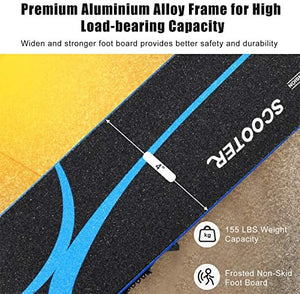 Rear Brake for Quick Stop: Kick scooter features an easily accessible rear brake. When pressed, it brings the scooter to a secure stop swiftly. The large aluminum-reinforced brake pedal ensures quick and firm braking.